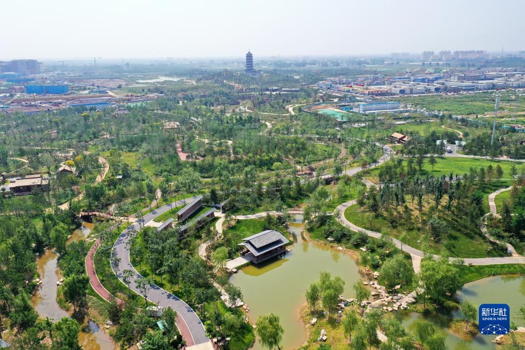 這是雄安新區(qū)悅?cè)莨珗@北苑內(nèi)的景色(2021年9月1日攝,無(wú)人機(jī)照片)。新華社記者 牟宇 攝