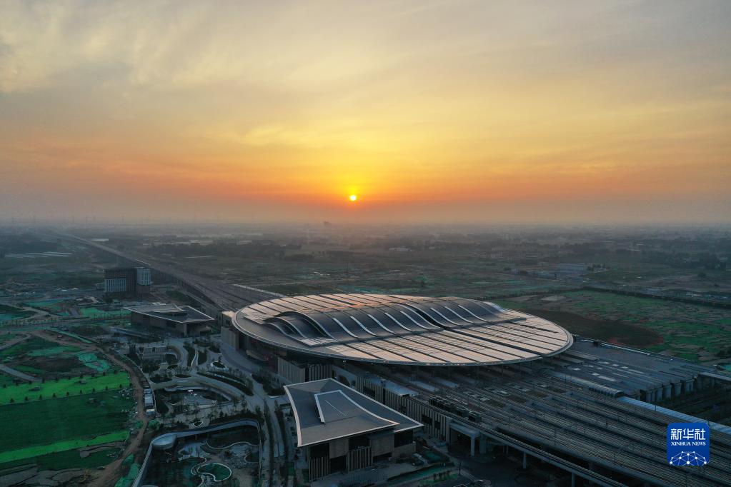 這是京雄城際鐵路雄安站(2021年7月1日攝,無(wú)人機(jī)照片)。 新華社記者 牟宇 攝