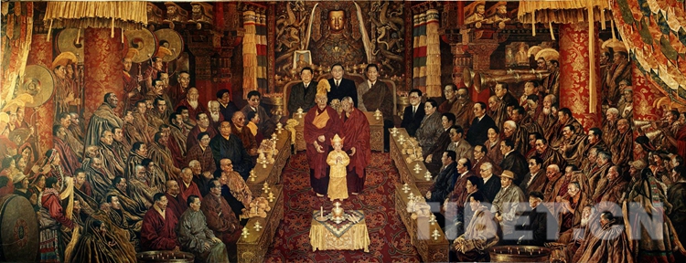 圖為油畫《金瓶掣簽》,阿旺扎巴、韓書力、于小冬繪。