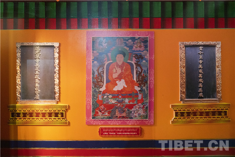 康熙皇帝照封五世達賴之例,冊封五世班禪·羅桑益西為“班禪額爾德尼”,并賜金冊金印,從此班禪世系稱為班禪額爾德尼,成為藏傳佛教格魯派第二大活佛轉(zhuǎn)世系統(tǒng)。五世班禪額爾德尼的金冊金印、乾隆皇帝欽命宮廷畫家繪制的六世班禪額爾德尼·羅桑巴丹益希畫像、七世班禪額爾德尼·丹貝尼瑪在擊退廓爾喀入侵后所立的《皇圖鞏固》青石碑……一件件文物、一幅幅照片,生動講述著歷代班禪及扎什倫布寺和中央政府的密切聯(lián)系與往來,講述著歷代班禪和扎什倫布寺在維護國家主權與領土完整以及促進西藏社會發(fā)展方面所起的重要作用。