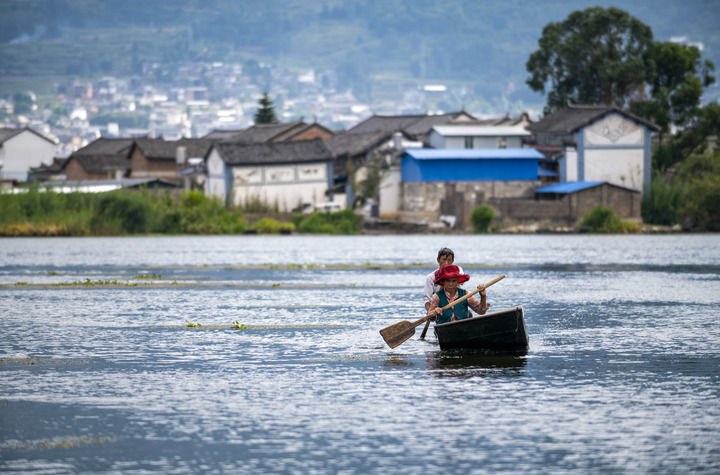 9月28日,洱源西湖當(dāng)?shù)卮迕駝澊鲂小P氯A社記者 陳欣波 攝