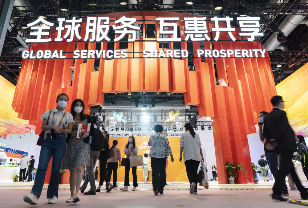 觀眾在2022年中國國際服務(wù)貿(mào)易交易會上參觀中國服務(wù)貿(mào)易成就展專區(qū)(2022年9月1日攝)。新華社記者 才揚(yáng) 攝