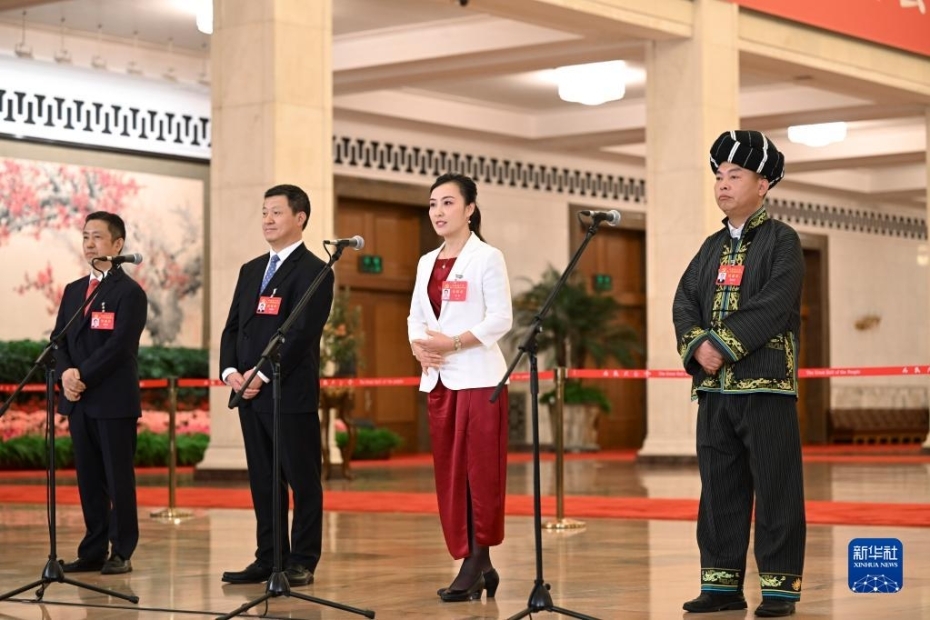 10月22日,中國共產(chǎn)黨第二十次全國代表大會閉幕會在北京人民大會堂舉行。這是閉幕會后,周海江、李國璋、張燕、施金通代表(自左至右)接受采訪。新華社記者 金良快 攝 圖片來源:新華網(wǎng)