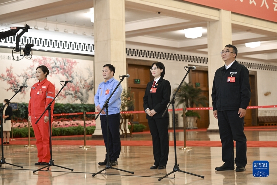 10月22日,中國共產(chǎn)黨第二十次全國代表大會閉幕會在北京人民大會堂舉行。這是閉幕會后,楊新泉、劉秀祥、石玉蓮、安長明代表(自左至右)接受采訪。新華社記者 金良快 攝 圖片來源:新華網(wǎng)
