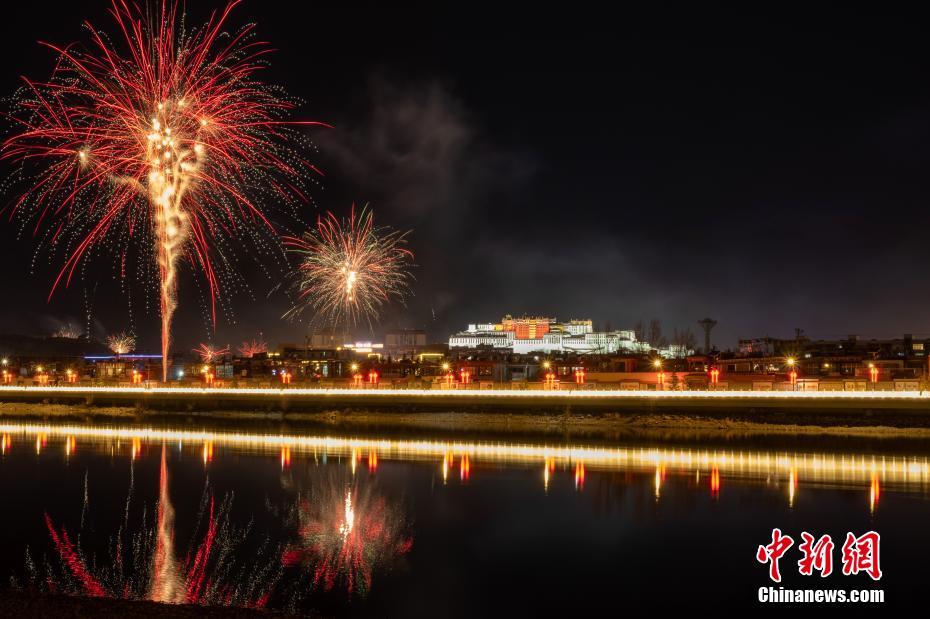 煙花璀璨 西藏拉薩迎藏歷新年古突夜