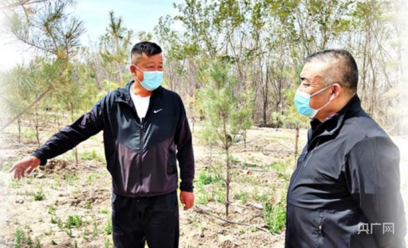 余磊在苗木基地察看苗木長勢情況。(央廣網(wǎng)發(fā) 阿依加瑪麗·列提甫 攝)