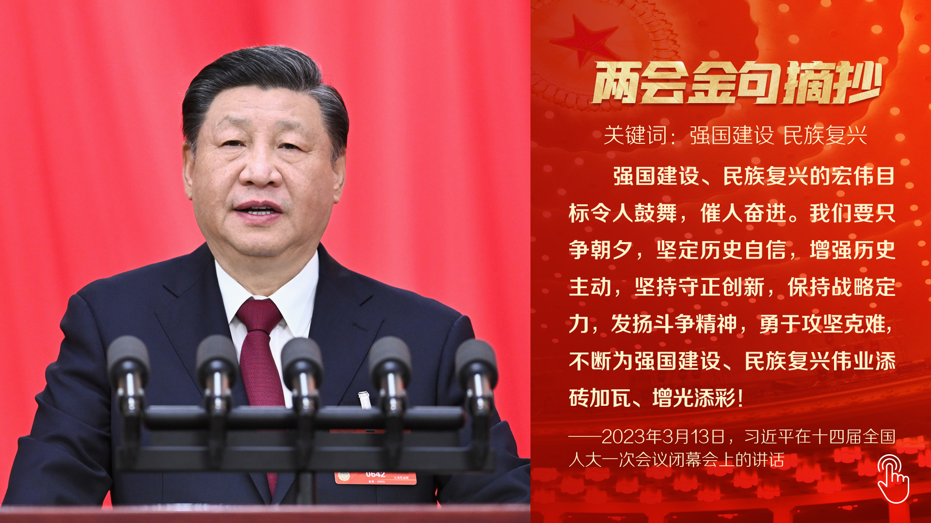 “在新征程上作出無負(fù)時(shí)代、無負(fù)歷史、無負(fù)人民的業(yè)績,為推進(jìn)強(qiáng)國建設(shè)、民族復(fù)興作出我們這一代人的應(yīng)有貢獻(xiàn)!”2023年全國兩會閉幕之際,習(xí)近平總書記發(fā)出的號召,澎湃人心,催人奮進(jìn)。