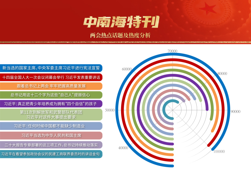 3月,世界目光,聚焦北京。近3000名中外記者采訪報(bào)道全國兩會。央視網(wǎng)“智聞”系統(tǒng)提取分析兩會期間全網(wǎng)時(shí)政新聞熱點(diǎn)顯示,習(xí)近平總書記的兩會關(guān)切吸引全網(wǎng)目光,新征程領(lǐng)路人的人民情懷成為網(wǎng)友“兩會印象”最深刻的主題之一。