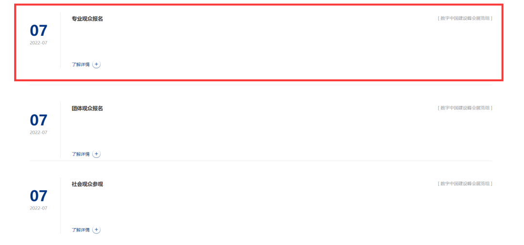 瀏覽器搜索“數(shù)字中國建設(shè)峰會”進(jìn)入官網(wǎng)。點(diǎn)擊“觀眾報名”欄目,選擇“專業(yè)觀眾報名”。