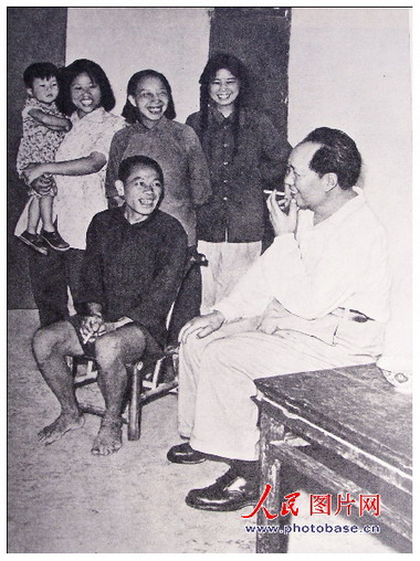 1959年,毛澤東在故鄉(xiāng)韶山同貧農(nóng)社員親切談話(huà)。