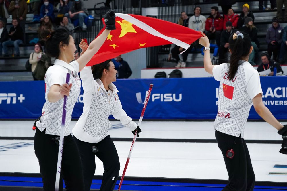 2023年1月22日,在美國普萊西德湖舉行的世界大學生冬季運動會女子冰壺決賽中,中國隊以6:4戰(zhàn)勝韓國隊,奪得金牌。新華社發(fā)