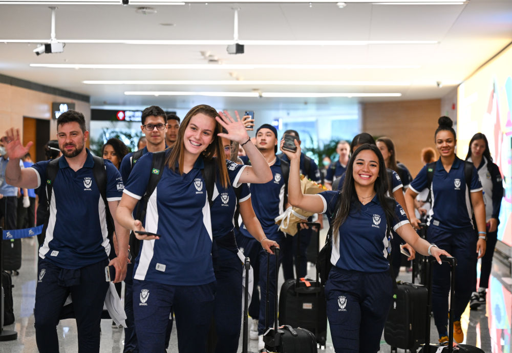 7月21日,巴西代表團運動員抵達成都天府國際機場。新華社記者 王曦 攝
