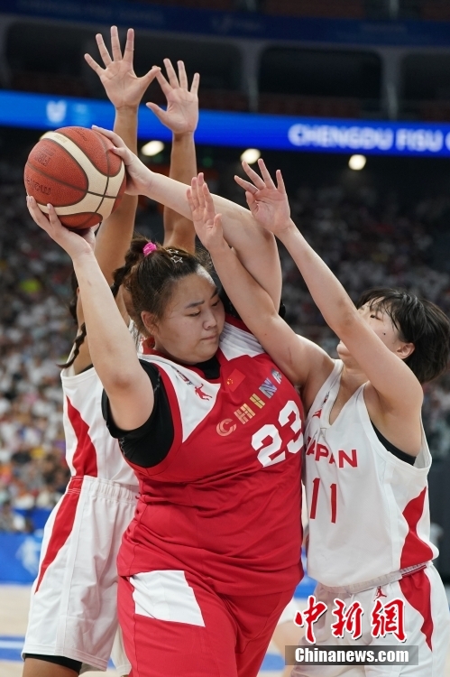 8月5日,第31屆世界大學(xué)生夏季運(yùn)動會女子籃球決賽在四川成都舉行,中國隊(duì)99:91戰(zhàn)勝日本隊(duì)獲得冠軍。圖為中國隊(duì)球員劉禹彤(紅衣,23號)在比賽中進(jìn)攻。