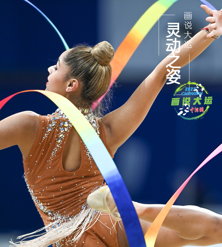 在成都第31屆世界大學(xué)生夏季運動會藝術(shù)體操的賽場上,運動員們用柔和挺拔的身姿,向我們詮釋了青春的靈動之美。輕盈流暢的體操動作搭配剛?cè)岵奈枳耍@是力與美的結(jié)合,更是柔與韌的藝術(shù)!圖為南非選手DEWAN Azra參加藝術(shù)體操個人全能決賽。