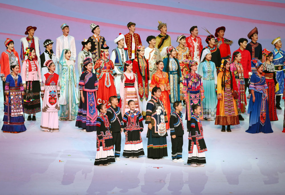 7月28日,吉好有果(中)在成都大運(yùn)會(huì)開幕式上歌唱。新華社記者 陳澤國 攝