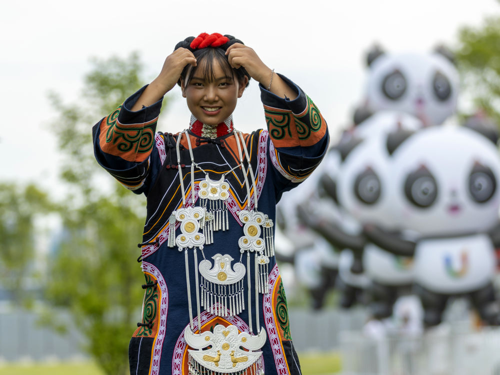 7月23日,準(zhǔn)備參加成都大運(yùn)會(huì)開幕式彩排的吉好有果。新華社記者 沈伯韓 攝