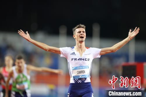 8月3日,成都大運(yùn)會(huì)男子1500米決賽中,法國隊(duì)選手坎皮恩獲得冠軍?!≈行律缬浾?蔣啟明 攝