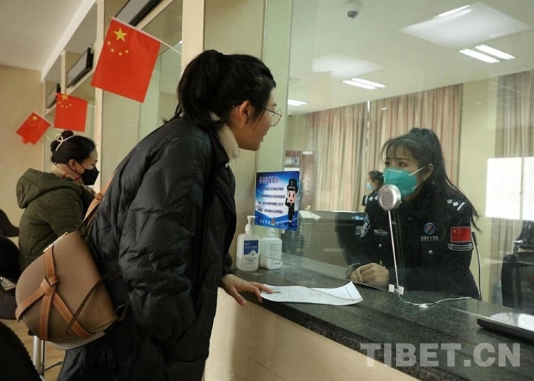 圖為藏歷新年期間民警為游客群眾辦理邊境通行證 攝影:徐錫萬(wàn)