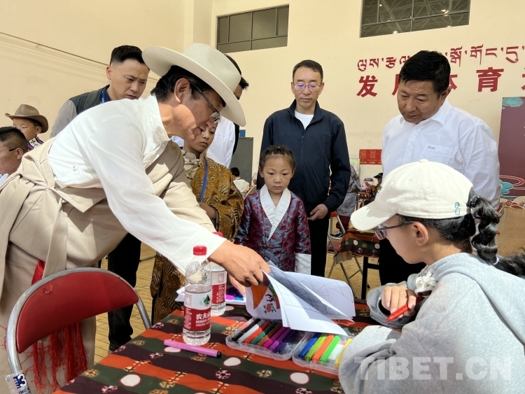 圖為小小藏棋老師給家長(zhǎng)傳授藏棋玩法和畫(huà)棋盤(pán)現(xiàn)場(chǎng) 攝影:德吉卓瑪