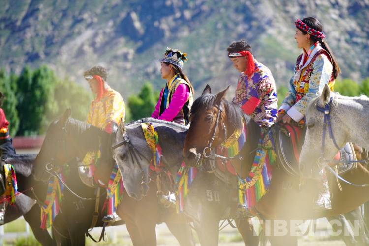 圖為身著西藏各地民族服飾的馬術(shù)表演隊(duì)員 攝影:趙振宇
