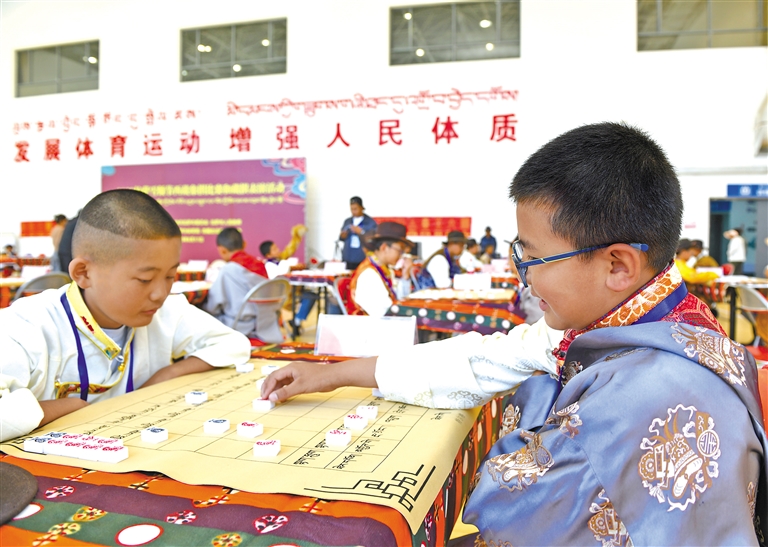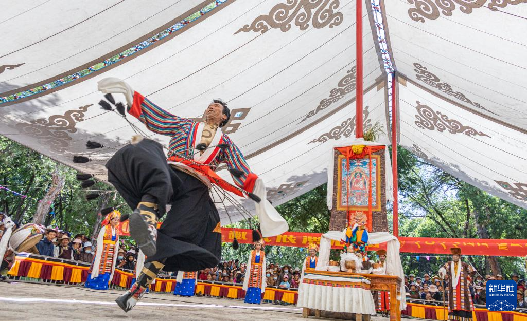8月19日,在拉薩市羅布林卡園林內(nèi),貢嘎縣乃薩藏戲隊(duì)在表演藏戲《朗薩雯崩》。新華社發(fā)(丁增尼達(dá)攝)
