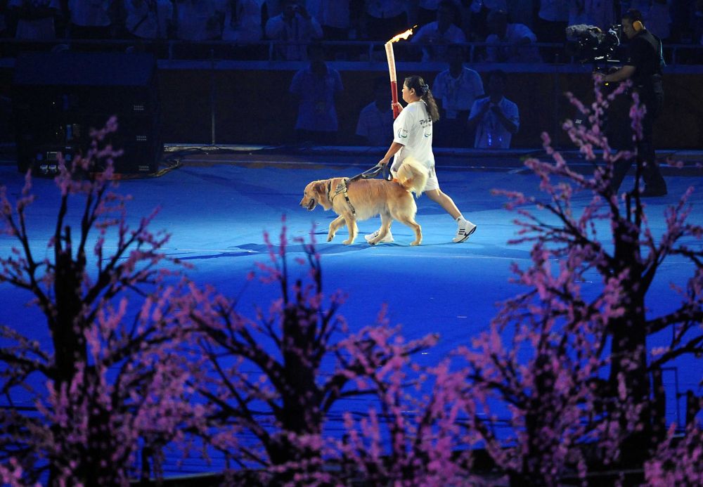 2008年9月6日,北京2008年殘奧會(huì)開幕式在國家體育場隆重舉行,火炬手平亞麗在進(jìn)行火炬?zhèn)鬟f。新華社記者王頌攝