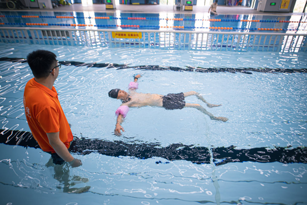 10月19日,殘疾人在杭州市錢塘區(qū)河莊文體中心無障礙游泳館內(nèi)游泳。新華社記者 江漢 攝