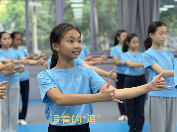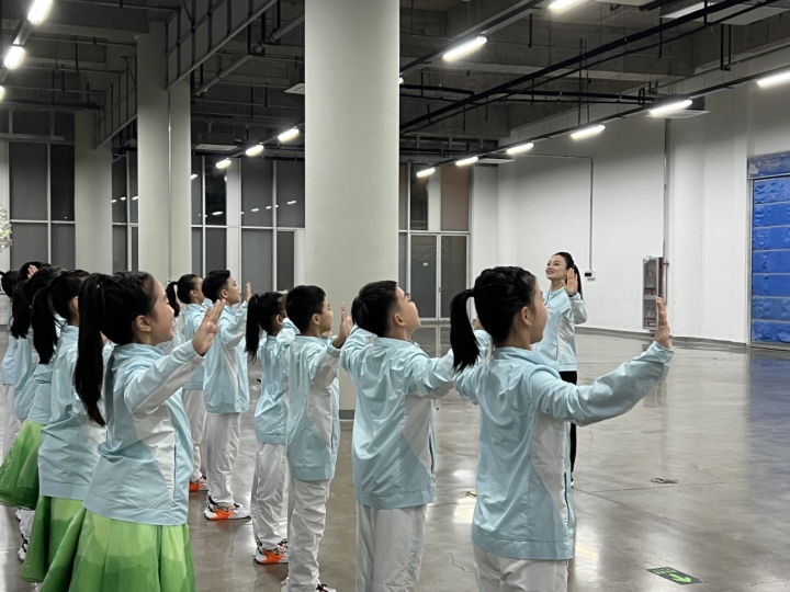 在開幕式聯(lián)排前的43天集中訓(xùn)練里,他們把大部分時(shí)間都花在了手語(yǔ)動(dòng)作上。在跟著“手語(yǔ)姐姐”牢記動(dòng)作后,一個(gè)姿勢(shì)伸多遠(yuǎn),一個(gè)角度需要打多大,都需要孩子們嚴(yán)格做到位。所以,即便在沒(méi)有集訓(xùn)的日子里,他們也會(huì)通過(guò)“群打卡”的方式上傳訓(xùn)練視頻,“小朋友哪個(gè)動(dòng)作沒(méi)做好,就定點(diǎn)保持5分鐘,然后打卡拍照,老師們也會(huì)在線上糾正動(dòng)作?!?/p>