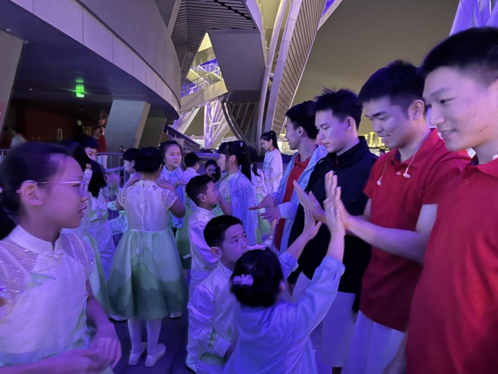 讓她欣喜的是,從臺(tái)州來(lái)到杭州后,參與開幕式聯(lián)排的孩子們表現(xiàn)都非常出色,他們保持著孩童最天真質(zhì)樸的狀態(tài),會(huì)熱情地和其他演職人員打招呼,會(huì)主動(dòng)教他人手語(yǔ),也和同臺(tái)演唱的其他孩子建立了深厚的友誼。