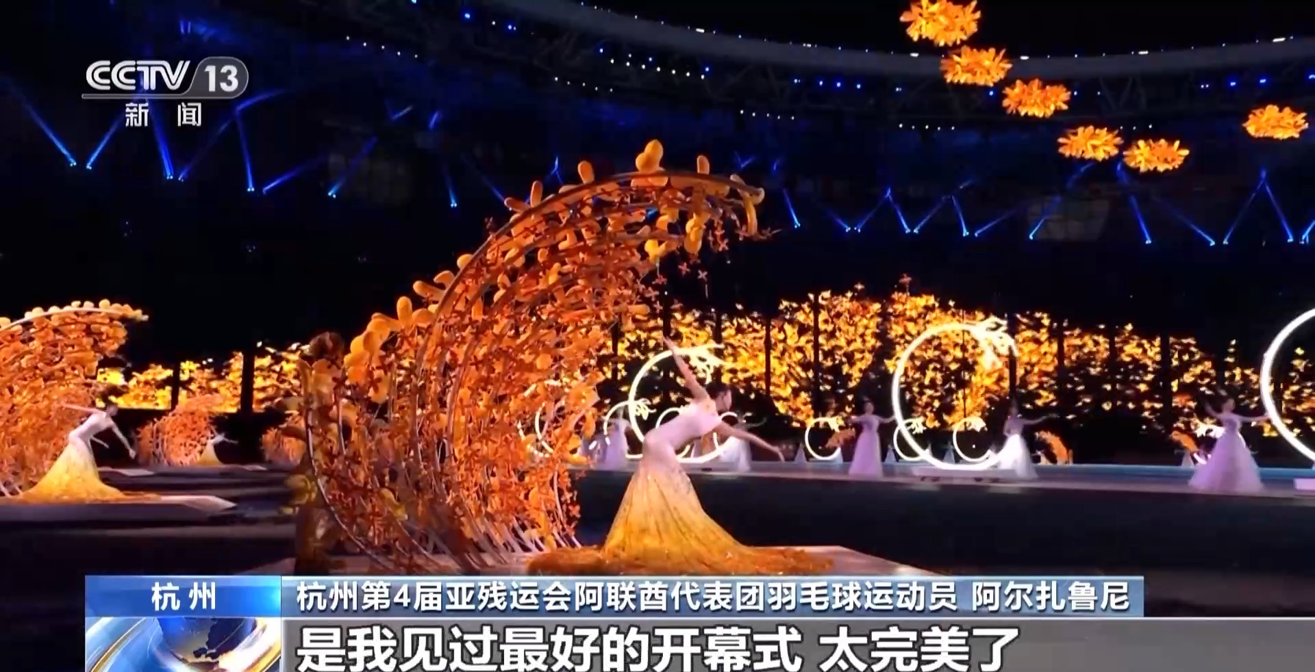 杭州第4屆亞殘運(yùn)會(huì)阿聯(lián)酋代表團(tuán)羽毛球運(yùn)動(dòng)員 阿爾扎魯尼:這是我參加的第三屆亞殘運(yùn)會(huì),是我見(jiàn)過(guò)最好的開(kāi)幕式,太完美了。感謝中國(guó)還有中國(guó)的觀眾,入場(chǎng)式的時(shí)候,你可以看到他們一直熱情地?fù)]舞雙手,用手中的燈光表達(dá)歡迎,特別震撼。