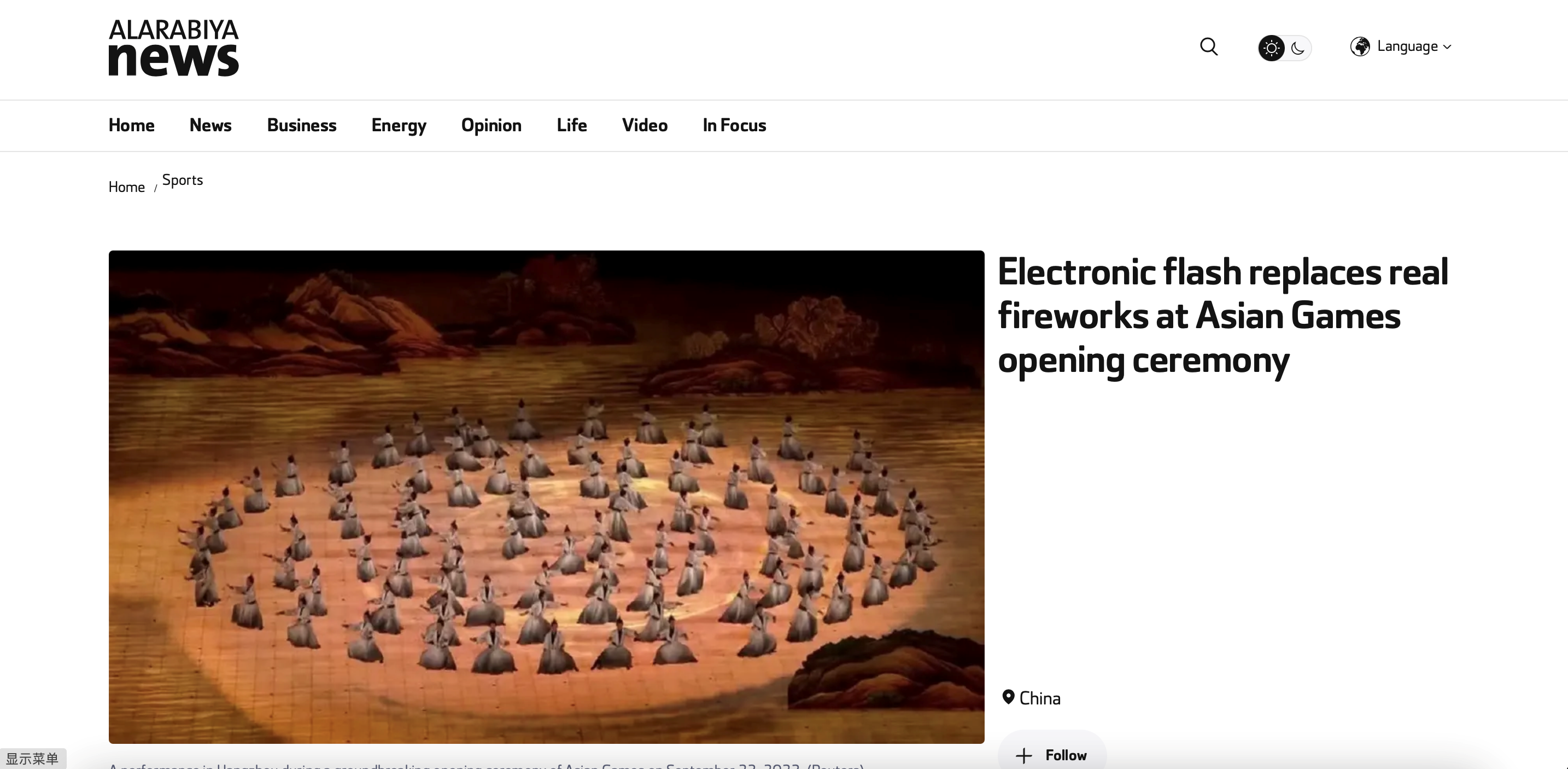 9月23日晚,第十九屆亞洲運動會在中國浙江省杭州市拉開帷幕。當晚開始,中東各大媒體就頻繁聚焦開幕盛況,第一時間播發(fā)報道。