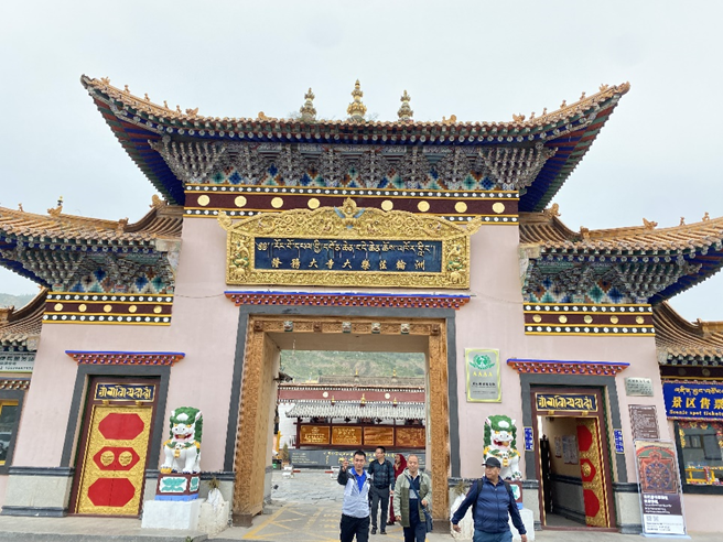 8月17日至20日,中國藏學(xué)研究中心副總干事李德成協(xié)同第七屆北京國際藏學(xué)研討會部分海外與會學(xué)者赴青海省進行為期四天的調(diào)研。19日上午,調(diào)研組一行參觀了同仁市隆務(wù)鎮(zhèn)西山腳下的隆務(wù)寺。隆務(wù)寺寺管會主任華太陪同參觀。隆務(wù)寺,藏語為“ ”,意為“隆務(wù)大寺大樂法輪洲”,是一座元、明時期的藏傳佛教寺廟,為典型的藏漢合壁式建筑,其飛檐斗拱與堡式紅墻融為一體,琉璃瓦與鍍金寶瓶交相輝映,是我國各民族交往交流交融的歷史見證。
