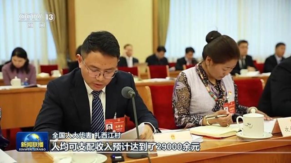 圖為扎西江村發(fā)言圖片來(lái)源:新聞聯(lián)播