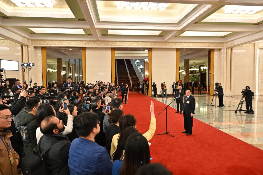 3月5日,第十四屆全國人民代表大會第二次會議首場“部長通道”集中采訪活動在北京人民大會堂舉行。新華社記者 李鑫 攝