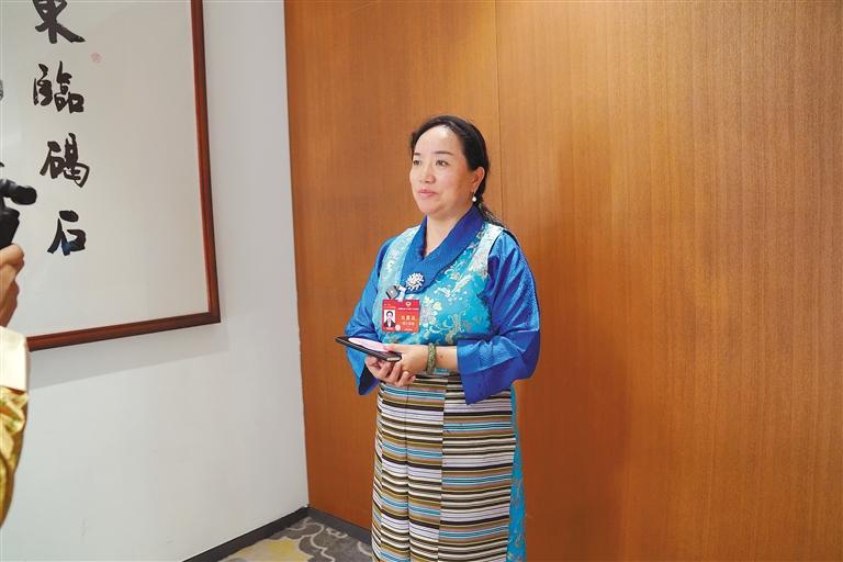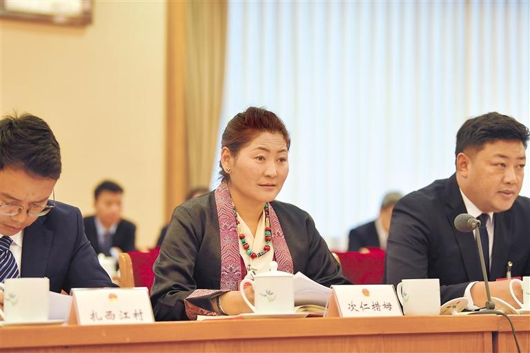 全國人大代表白瑪措在會上發(fā)言。記者 旦增西旦 攝
