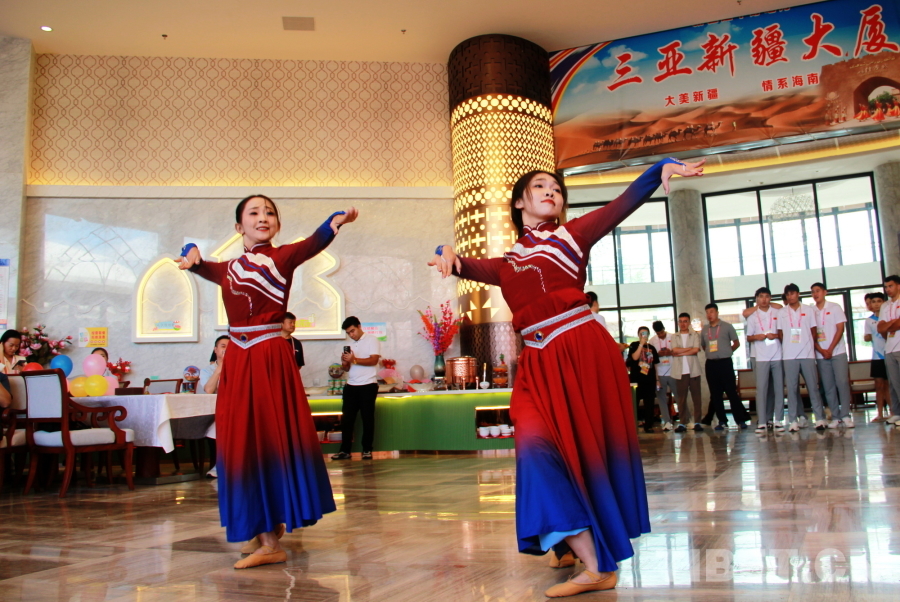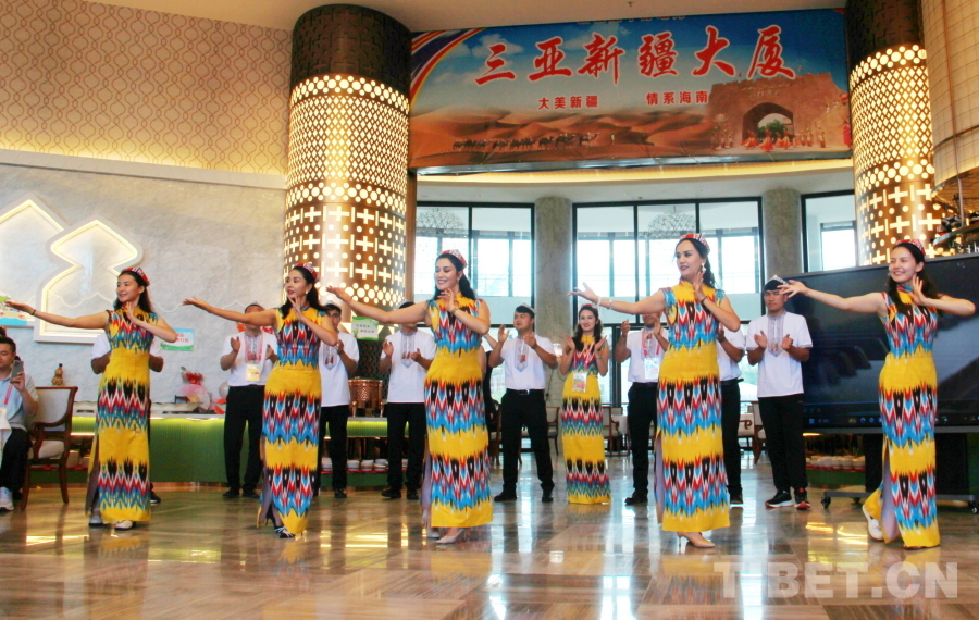 圖為新疆代表團在駐地海南三亞新疆大廈精心準(zhǔn)備聯(lián)誼活動 攝影:劉莉