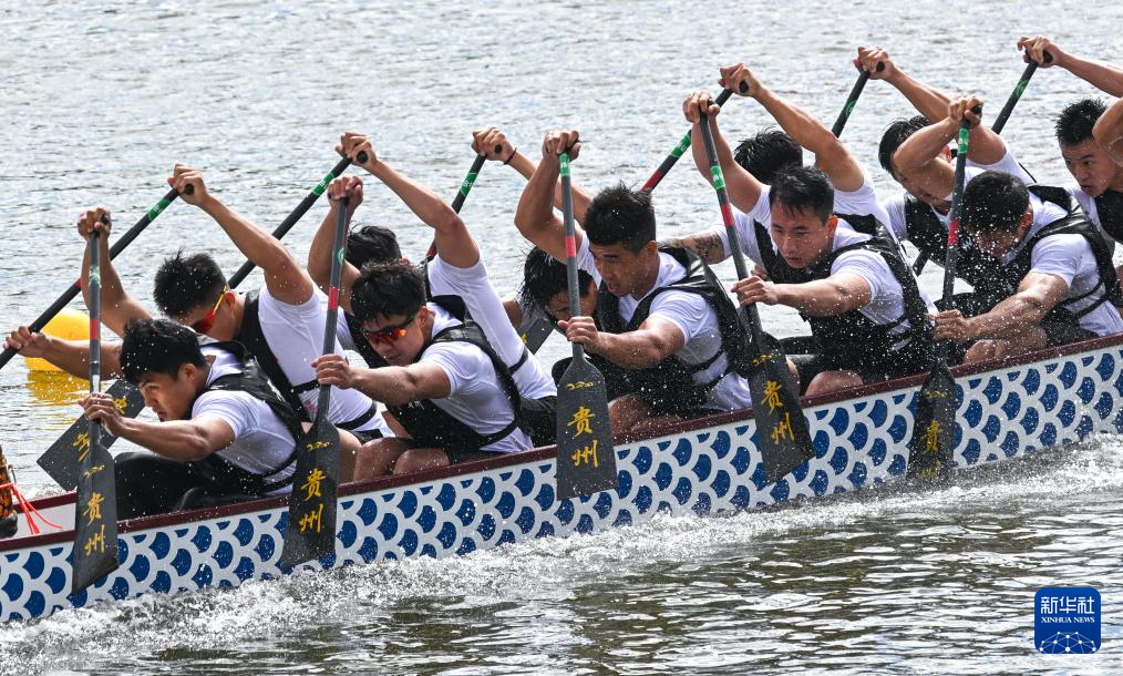 當日,在第十二屆全國少數(shù)民族傳統(tǒng)體育運動會男子組(標準龍舟)1000米直道賽中,貴州隊獲得一等獎。