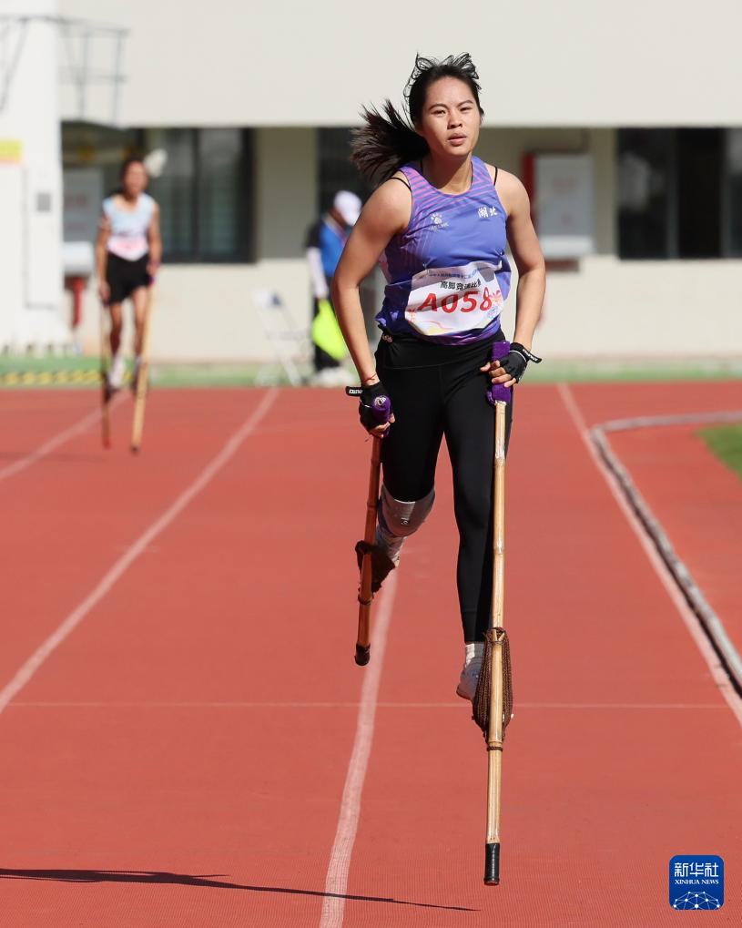當(dāng)日,第十二屆全國少數(shù)民族傳統(tǒng)體育運(yùn)動(dòng)會(huì)高腳競速女子400米復(fù)賽在海南省三亞市舉行。
