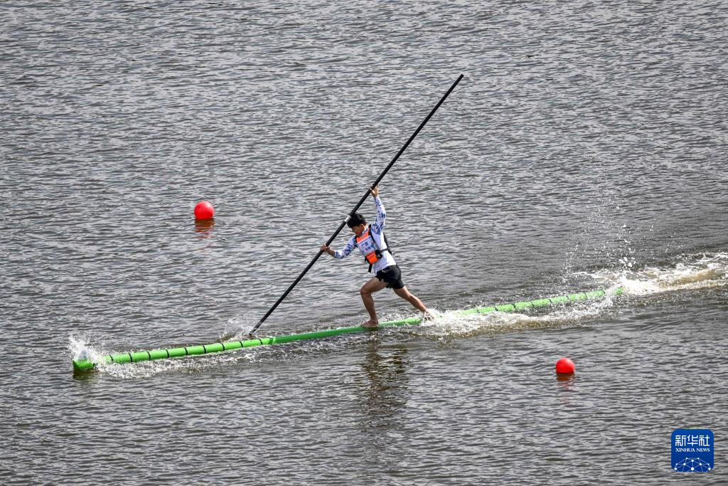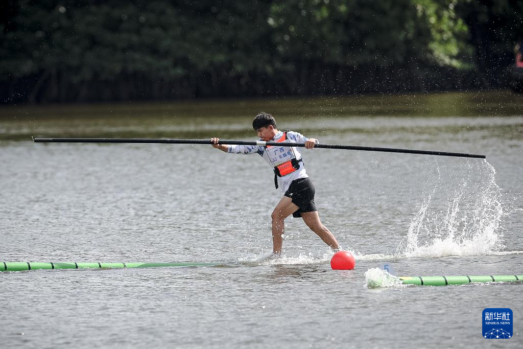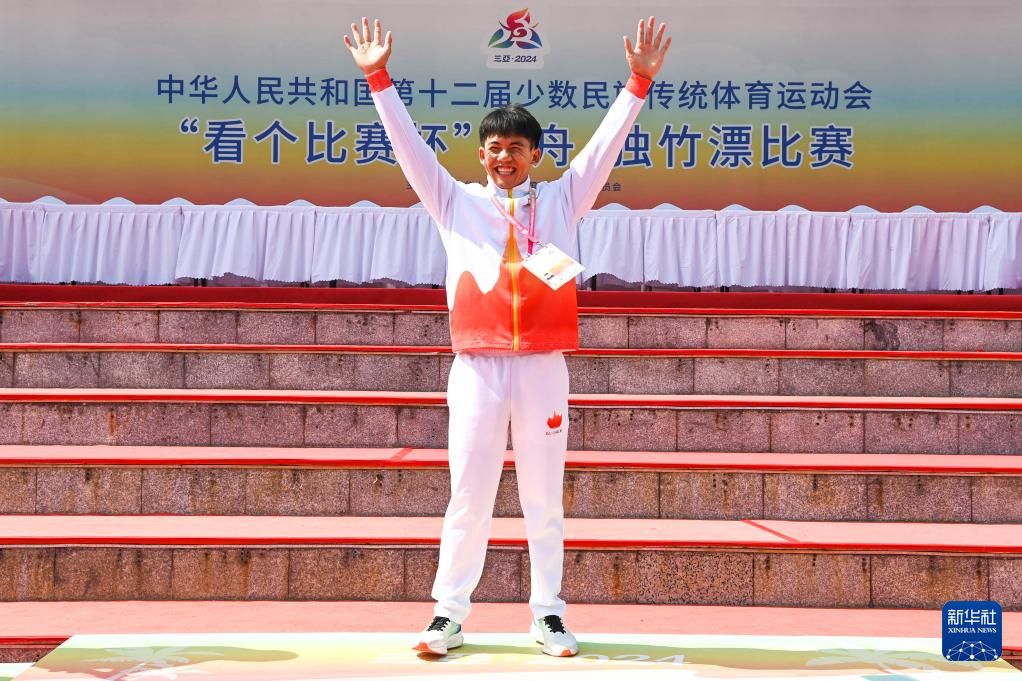 當(dāng)日,第十二屆全國(guó)少數(shù)民族傳統(tǒng)體育運(yùn)動(dòng)會(huì)獨(dú)竹漂男子組60米直道賽在海南省三亞市舉行。