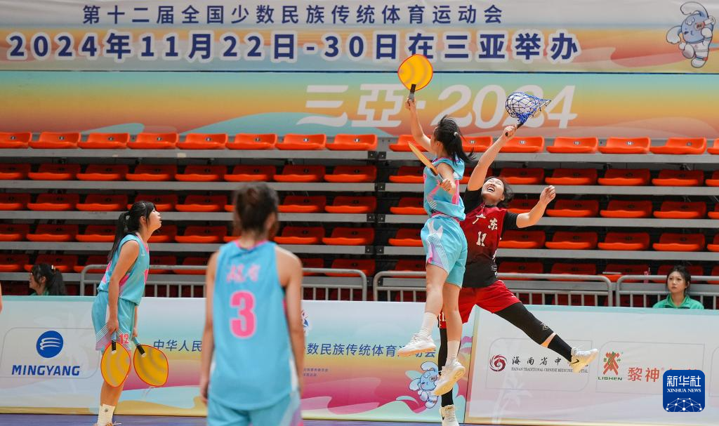 當(dāng)日,第十二屆全國(guó)少數(shù)民族傳統(tǒng)體育運(yùn)動(dòng)會(huì)珍珠球女子淘汰賽在海南三亞舉行。