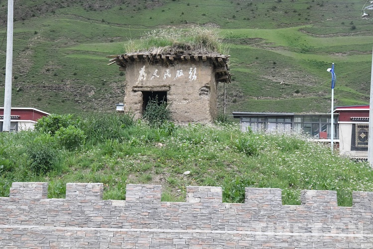 瞭望臺(tái)建在吉若塘中心的一座土丘上,是一座夯土圍墻和細(xì)木屋頂建造的簡(jiǎn)易小屋,高約2.5米,長(zhǎng)寬各約3米,外墻上方醒目地方寫(xiě)著“為人民服務(wù)”五個(gè)白色大字,現(xiàn)在依然很清晰。據(jù)當(dāng)?shù)乩习傩战榻B,此前瞭望臺(tái)與營(yíng)地之間還有一條高1.5米、寬約2米的地道,供駐守人員安全通行。
