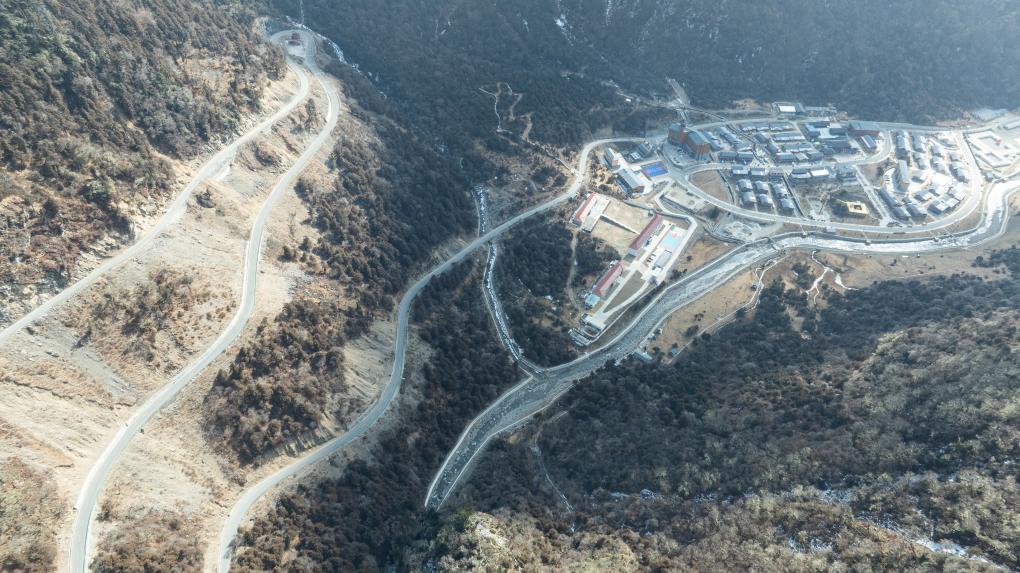 這是2月5日拍攝的玉麥鄉(xiāng)及周邊公路(無(wú)人機(jī)照片)。新華社記者 丁增尼達(dá) 攝