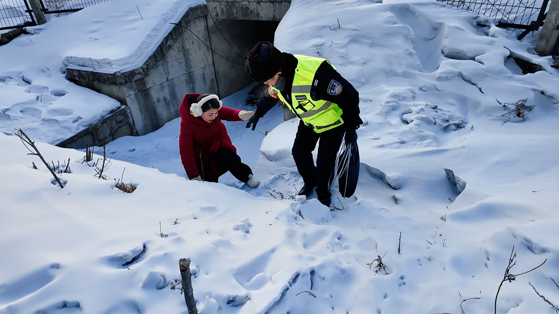 凌晨6時(shí)30分,我隨老薛踏上巡線路。今年已57歲的老薛,在雪地中步履輕盈。積雪沒踝,寒風(fēng)如刃,僅走半公里我便雙腳麻木。老薛負(fù)責(zé)安全巡視鐵路沿線22公里,32年來踏過春雪、夏汛、秋霜、冬寒,日復(fù)一日從未停歇;獨(dú)自駐站15年,3輛自行車被歲月磨壞。巡線時(shí),他有一個(gè)時(shí)刻不離身的記錄本,里面記錄著每一處涵洞編號(hào)、每一段鐵軌隱患。彎腰查涵洞時(shí),警帽積雪簌簌滑落,身材并不魁梧的他雙手布滿老繭,在固定標(biāo)語牌纏繞鐵絲時(shí)異常有力。
