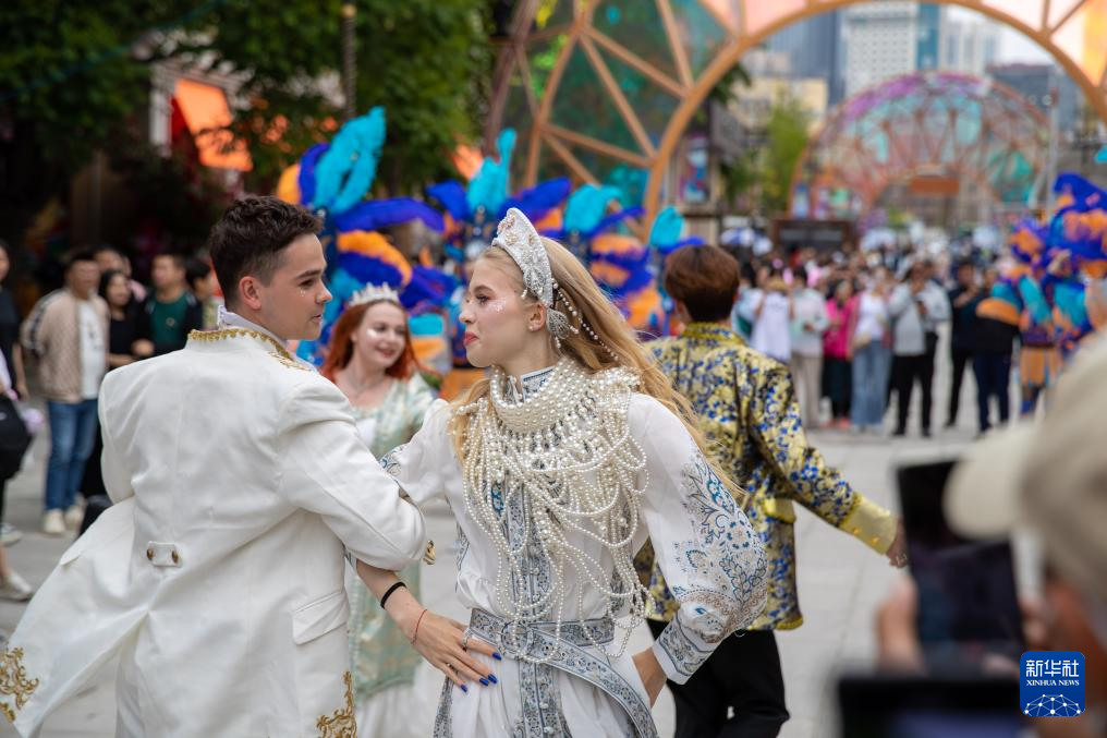 游客在大連俄羅斯風情街欣賞表演(2024年5月25日攝)。
