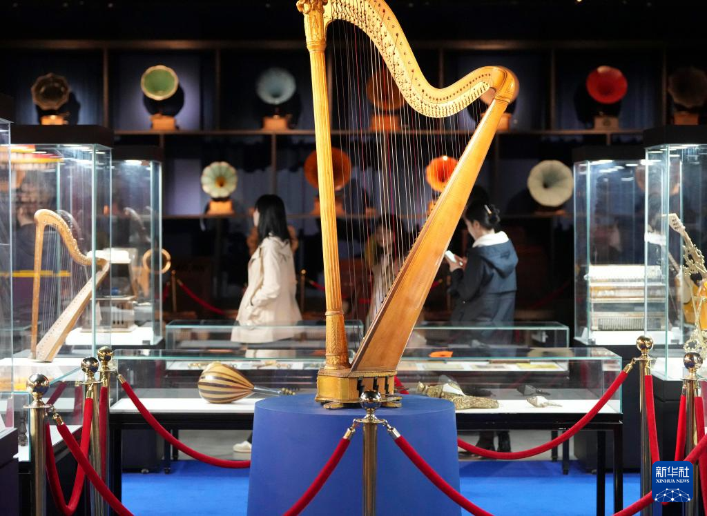 在大連的東方威尼斯水城,游人在世界音樂文化博物館內(nèi)參觀(2024年4月16日攝)。