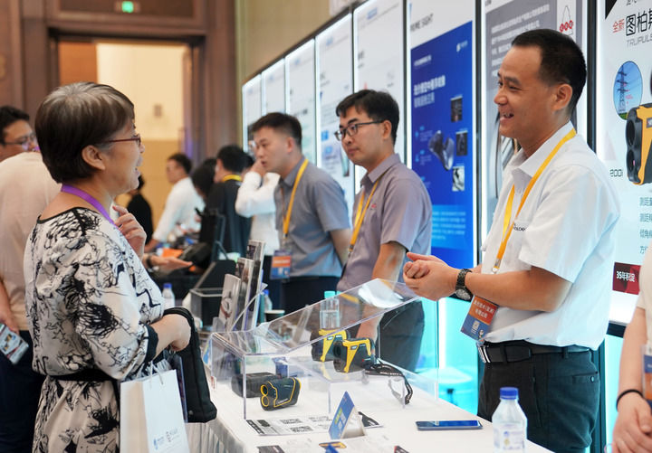 2024年8月8日,在上海舉行的第七屆進(jìn)博會技術(shù)裝備、汽車展區(qū)展前供需對接會現(xiàn)場,展商工作人員(右)向采購商介紹企業(yè)產(chǎn)品。新華社發(fā)(陳浩明 攝)