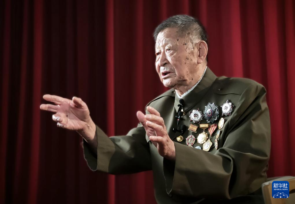 黃宗德接受采訪時講述自己的戰(zhàn)斗經(jīng)歷(2024年9月10日攝)。新華社發(fā)(靳憲彬 攝)