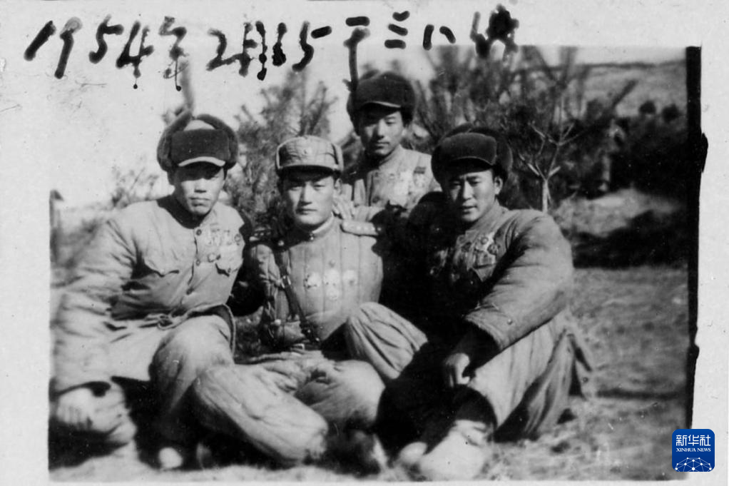 黃宗德(右一)與戰(zhàn)友在朝鮮合影留念(1954年2月15日攝)。新華社發(fā)