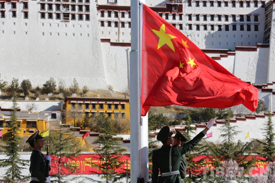 圖為2025年3月28日,國旗在布達拉宮廣場升起攝影:旦曲