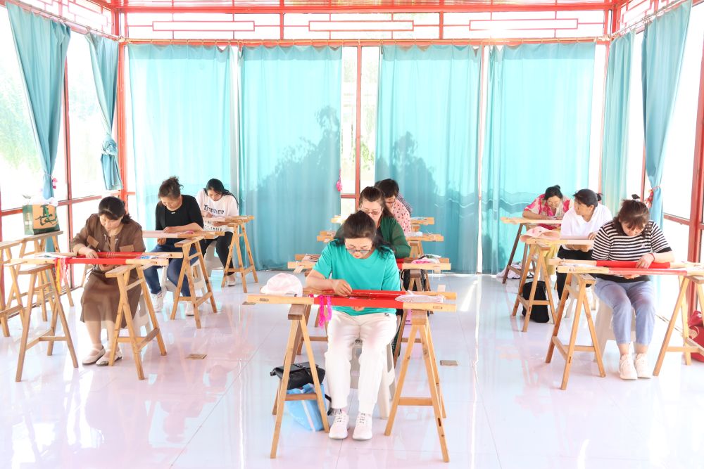 在內(nèi)蒙古自治區(qū)科爾沁右翼中旗蒙古族刺繡產(chǎn)業(yè)園車間內(nèi),由蒙古族、漢族、朝鮮族、達(dá)斡爾族繡工們坐在繡花撐子前各顯身手。